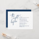 Announce your happily ever after in style with our modern classy navy blue theme design (The Night Before) wedding rehearsal celebration invitation card. It is ideal for couples who have decided to celebrate the night before their big day. With its sophisticated yet playful design, this invitation is sure to set the tone for an unforgettable event. The invitation card features modern romantic script design, adding a touch of timeless elegance to your celebration. Designed by TeeshaDerrick