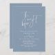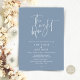"The Night Before". Modern romantic minimalist design themed, wedding rehearsal dinner invitation card (in dusty blue, portrait orientation theme). Planning a wedding Rehearsal Dinner celebration with the to-be Bride and to-be Groom, before their BIG day? Invite the guests with this perfect Wedding Rehearsal Dinner Invitation Card. Easily edit it with your rehearsal dinner invitation details.
