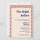 Step into a time capsule of chic nostalgia with our The Night Before Rehearsal Dinner Invitation. Designed to transport you to the glamourous 1960s, this invitation is a harmonious blend of vintage sophistication and contemporary style. The front of the invitation features a classic pattern, embracing bold and contrasting colours that set the stage for a celebration unlike any other. Add your own details by clicking on the "personalise" option. On the back of the card, you can add your own QR code image or generate one using Zazzle's customisation tools or delete and replace the text.