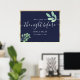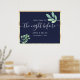 Elegant, modern, botanical, simple gold and navy blue The Night Before rehearsal dinner welcome poster with handwritten calligraphy script.