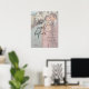 The product was so pretty! I was surprised when it arrived that it was just poster thickness but I purchased a foam board and used two sided tape to attach it so it could stand up. Perhaps I didn’t read carefully regarding the thickness of the paper. With this poster and the same design napkins, place cards and table cards, the rehearsal decorations were perfect! I added single burgundy hydrangeas to clear vases with fairy lights inside as centerpieces and it looked wonderful! Colors were beautiful! Printing was excellent!