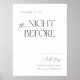 This beautifully designed 'The Night Before' welcome sign sets the tone for an unforgettable rehearsal dinner. Designed with a minimalist esthetic, it features exquisite calligraphy and bold typography that effortlessly captures the essence of your special moment. The simple yet striking design is perfect for couples who appreciate the beauty in subtlety. It serves as a sophisticated welcome to your guests, hinting at the beautiful journey that begins the next day. Ideal for creating an ambiance of refined romance, this sign is not just a piece of decor, but a cherished keepsake of the love and joy shared on the eve of your wedding.