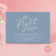 Announce your happily ever after in style with our modern classy aesthetic dusty blue theme design (The Night Before) wedding rehearsal celebration invitation card. It is ideal for couples who have decided to celebrate the night before their big day. With its sophisticated yet playful design, this invitation is sure to set the tone for an unforgettable event. The invitation card features modern romantic script design, adding a touch of timeless elegance to your celebration. Designed by TeeshaDerrick