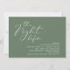 Announce your happily ever after in style with our modern aesthetic sage green theme design (The Night Before) wedding rehearsal celebration invitation card. It is ideal for couples who have decided to celebrate the night before their big day. With its sophisticated yet playful design, this invitation is sure to set the tone for an unforgettable event. The invitation card features modern romantic script design, adding a touch of timeless elegance to your celebration. Designed by TeeshaDerrick