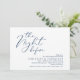 Announce your happily ever after in style with our modern aesthetic navy blue theme design (The Night Before) wedding rehearsal celebration invitation card. It is ideal for couples who have decided to celebrate the night before their big day. With its sophisticated yet playful design, this invitation is sure to set the tone for an unforgettable event. The invitation card features modern romantic script design, adding a touch of timeless elegance to your celebration. Designed by TeeshaDerrick