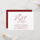 Announce your happily ever after in style with our modern aesthetic burgundy wine red theme design (The Night Before) wedding rehearsal celebration invitation card. It is ideal for couples who have decided to celebrate the night before their big day. With its sophisticated yet playful design, this invitation is sure to set the tone for an unforgettable event. The invitation card features modern romantic script design, adding a touch of timeless elegance to your celebration. Designed by TeeshaDerrick