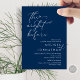 Announce your happily ever after in style with our modern romantic portrait navy blue theme design (The Night Before) wedding rehearsal celebration invitation card. It is ideal for couples who have decided to celebrate the night before their big day. With its sophisticated yet playful design, this invitation is sure to set the tone for an unforgettable event. The invitation card features modern romantic script design, adding a touch of timeless elegance to your celebration. Designed by TeeshaDerrick