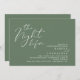 Announce your happily ever after in style with our modern aesthetic sage green theme design (The Night Before) wedding rehearsal celebration invitation card. It is ideal for couples who have decided to celebrate the night before their big day. With its sophisticated yet playful design, this invitation is sure to set the tone for an unforgettable event. The invitation card features modern romantic script design, adding a touch of timeless elegance to your celebration. Designed by TeeshaDerrick
