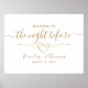 Elegant, modern, minimalist The Night Before rehearsal dinner welcome poster with gold rope heart and simple handwritten calligraphy script.