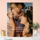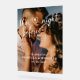 A 2-photo (front and back) with a modern flowing calligraphy script in gold accented with a heart. Ideal welcome sign announcement to your guests on The Night Before.