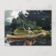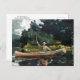 A fine art postcard with the watercolor painting by the American artist Winslow Homer (1836-1910) The North Woods (1894). A landscape with a man fly-fishing from a canoe in a mountain stream.
