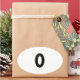 The number zero (0) in black oval sticker