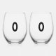 The number zero (0) in black stemless wine glass