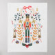 A fun yet classic Nutcracker poster with earth tones and deep reds on a white watercolor paper style background to make an impact in your home.