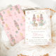Personalise this sweet pink winter onederland first birthday party invitation with your party details easily and quickly, simply press the customise it button to further re-arrange and format the style and placement of the text. Featuring whimsical characters from the Nutcracker in sweet pastel colours. Perfect for your little snowflake's first birthday! Matching items available in store! (c) The Happy Cat Studio.