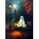 In the quiet heart of an autumn park, a gentle spirit finds a place to rest. This enchanting art print captures a lonely ghost sharing a bench with his glowing jack-o'-lantern companion, surrounded by the warm colours of fall. It's the perfect blend of spooky and sweet, ideal for adding a touch of magical, storybook charm to your Halloween decor. Let this friendly phantom bring the whimsical spirit of autumn into your home.