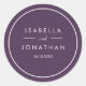 Seal your invitation envelopes or favours with these elegant purple stickers featuring your names and dates