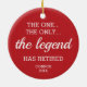 The One The Only Legend Has Retired Personalised Ceramic Ornament. Personalise with your custom information on both front and back.