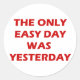 The Only Easy Day was Yesterday inspirational Classic Round Sticker