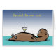A cute cartoon otter swimming in the water with a fancy drink. Very cool! (The text on the front is editable. You can also delete it, if you want.)