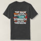 This impactful design features the empowering message "The Pain You Feel Today Is The Strength You Feel Tomorrow" in a bold, multi-font typography style. The words are rendered in a clean, modern aesthetic with strong contrasts, using black text for "The Pain You Feel Today" and highlighting "STRENGTH" and "Tomorrow" in a vibrant, almost neon green with a distinct, jagged underline. The text is set against a clean, light grey background, making the message stand out prominently. The overall composition is dynamic and uplifting, serving as a powerful reminder of growth through adversity and the promise of a stronger future.