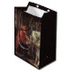 This design features a painting by the French artist François Boucher (1703–1770). It depicts a young gentleman who is working on a canvas painting. He is holding his artist's palette in one hand and his paintbrush in another. He is painting a landscape scene with coastal cliffs and water. The artist himself is wearing a red coat and red cap; he is also wearing brown boots. He appears to be consulting his notes as he thinks about how to finish the painting.