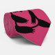 There is a tie. The tie is pink. What is on the tie? Is it a panda? It is a panda.