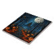This Halloween design plunges you into a haunted forest, lit by an imposing full moon. A winding paved path, surrounded by bare and tortuous trees, leads to a mysterious haunted house perched on a distant hill. Sculpted pumpkins with worrying smiles line the path, throwing an orange glow on fallen autumn leaves. Bats swirl around in the sky bathed in lunar light, accentuating the scary atmosphere. Ideal for Halloween's decoration, this design captures the essence of an enchanting autumn night, mixing mystery and fun thrills.