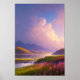 This digital artwork captures the breathtaking beauty of a river passing through a stunning valley, covered in the warm glow of the evening sun. The vibrant colours of the valley and the soft, warm light of the sun create a serene and peaceful atmosphere.