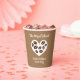 "The Perfect Blend" paper coffee cups for wedding party. Personalise with your own custom name and date. Cute design with heart and coffee beans. Personalise with names of bride and groom. Fun quote for coffee lovers and caffeine addicts.