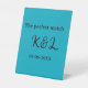 The perfect match couple name letter date blue sim pedestal sign
