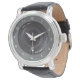 A watch for photographers and photography fans that features the effect of a 28mm F3.5 camera lens in the centre of the watch  face. There's a placeholder for initials or a monogram to add the personal touch. An ideal gift for photographers. The lens is a digital image printed on the watch face.