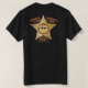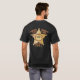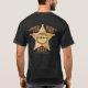 This dark tee features a small logo on the front like a badge, and a large logo on the back.
