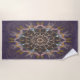 Dive into an artistic journey where the light of friendship bends and transforms: a beach towel that weaves a tale of reflection, symbolised by a mandala of vibrant hues and abstract threads.
