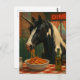 The pinto unicorn in a diner eating Spaghetti Postcard