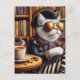 The Pirate Cat With Coffee in a Bookshop Postcard
