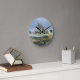 The clock did not take as long to arrive as I thought it might and was extremely well packaged. I didn't do the measurements so I didn't realize it is a little smaller than the average clock but that does not matter (just make sure you check if that's important to you).It is really nifty! It seems very solid and well made not flimsy at all. It has been going well and has kept good time in its few weeks on my wall. Nice product. Gets noticed too! Nicer in real life than the picture but true to the picture