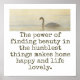 We all see beauty in our own way. Show your appreciation with this beauty-themed quote: The power of finding beauty in the humblest things makes home happy and life lovely.