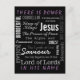 THERE IS POWER IN HIS NAME! Jesus is a beautiful name for a wonderful Saviour. It means "God who came to Save us". Here are seventeen names that are used in the Bible to describe Jesus. Modern white and grey lettering with stylish fonts on black. Easy to use templates to add (or subtract) text.