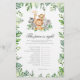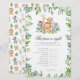 Sophisticated classic "Guess the price is right" game designed for a baby boy shower, adorned with a charming Safari Jungle animals: elephant, lion, monkey, zebra and giraffe, surrounded by palm leaves and other greenery . Engage your guests with this delightful game, perfect for adding fun and excitement to your celebration while creating cherished memories.