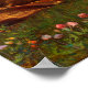 This is a digitally enhanced print derived from an antique pre-Raphaelite painting titled "The Princess Out of School" by Edward Robert Hughes and depicts a young woman laying in a woodland field of flowers.