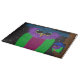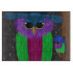 The Prismatic Crested Owl is standing tall, next to his little owlet. Drenched in bright colours of blues, lime green, purple, and fuchsia.