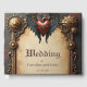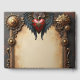 The pulsating heart of mechanics, a glowing steampunk heart. The frame features the characteristic steampunk style, chraacterised by a fascinating blend of Victorian elegance and industrial flair. Complex mechanical details such as intricate gears, screws, and bolts adorn the edge, lending depth and texture to the design. The heart is mechanically designed, with visible springs, small gears, and metallic embellishments that symbolise its vitality in a technical context. Flanking the heart are dark wings.