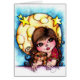 Big eye girl and her kitty cat friend gazing at the moon