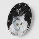 THE QUEEN OF WHITE CATS MONOGRAM ,Pink Gemstones Large Clock