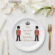 A special 9 inch paper plate for parties to celebrate the 90th birthday celebrations of the British Monarch, Queen Elizabeth Second. It depicts the celebration in gold colour words, two guardsmen and a crown.