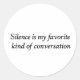 This is a simple, elegant typographic image featuring the introspective quote, "Silence is my favourite kind of conversation." The text is presented in a classic, refined serif font, centred on a soft, light-grey background. The minimalist design emphasizes the message, making it ideal for posts about introversion, tranquillity, reflection, and finding peace in quiet moments. It speaks to those who value listening more than speaking and find comfort in solitude.