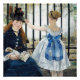 The Railway Edouard Manet . Group portrait in blue tones. A woman in a cute hat with a book in her hands. A little girl in a fluffy dress with a blue bow stands nearby and looks into the distance. Reproduction of famous works of art images in the public domain.