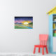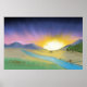 Immerse yourself in the serene and introspective beauty of "The Ranch," an original digital painting by Jason Tudor. This matte-paper print measures 26 inches by 14 inches and showcases a stunning sunset that bathes the American Western landscape in bright pinks, golds, and greens. Reflecting the cautious optimism of the artist's mood, the sunset illuminates a Wyoming, Montana, or Colorado-inspired ranch.