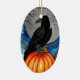 Original painting by Sandra Gale for the Halloween season featuring a black raven perched on a pumpkin. Great design for kids and adults to celebrate the spooky Halloween holiday.